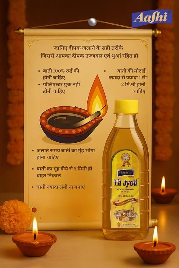 - TRADITIONAL LAMP OIL: Pure til (sesame) oil specially formulated for traditional religious lamps and diyas, providing steady illumination
