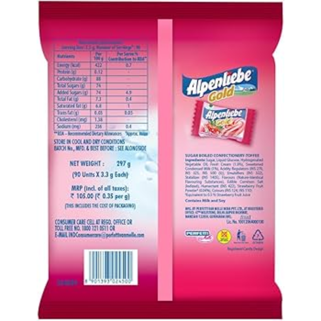 Alpenliebe Gold Cream Strawberry Flavour Toffee, 297 g (90 x 3.3 g)