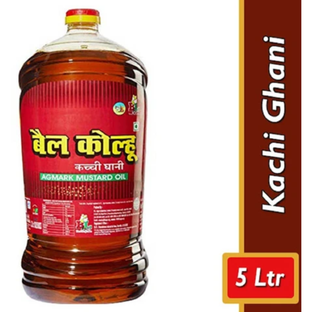 Bail Kolhu Kachi Ghani Mustard Oil (Cooking Oil Sarso Ka Tel) 5 L Jar