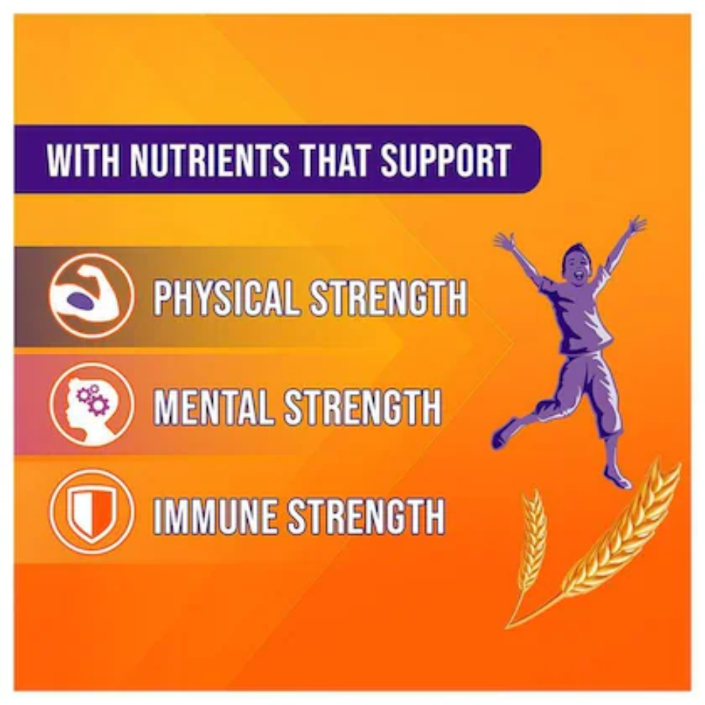 - Strength Every Day+ Bournvita is a scientifically designed formula, crafted by nutritionists with a bundle of nutrients that are known to support Physical strength (Calcium, Vitamin D and Magnesium are known to maintain Bone and Muscle health); Mental Strength (Iron, lodine and Zinc which help in normal cognitive functions); Immune strength (Vitamin C, Vitamin D, Zinc and Iron to support the immune functions). Thus, supporting strength and providing high energy.