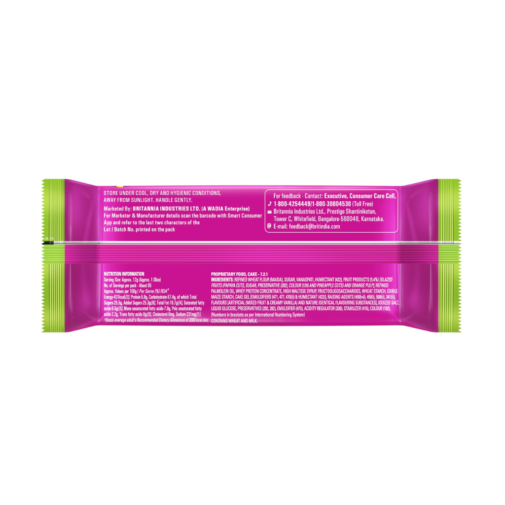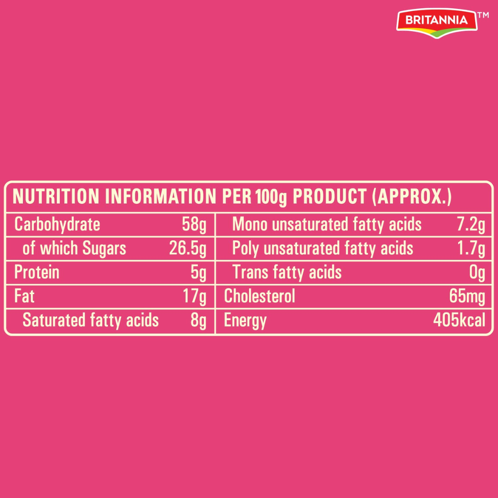 Indulge in the delightful taste of Britannia’s Fruit Cake, made with the finest all-natural ingredients for an unparalleled treat. Soft, spongy, and fluffy slices melt in your mouth, bursting with the irresistible flavours of fresh fruit, creamy milk, and rich eggs. Britannia’s commitment to delivering fresh and healthy products shines through in every bite, making this cake a true delight for the senses. Whether enjoyed on its own or paired with your favourite beverage, this Britannia Gobbles Bar Cake Fruity Fun is sure to elevate your tea-time experience and leave you craving more of its mouth-watering goodness.