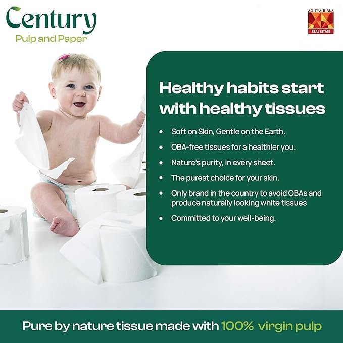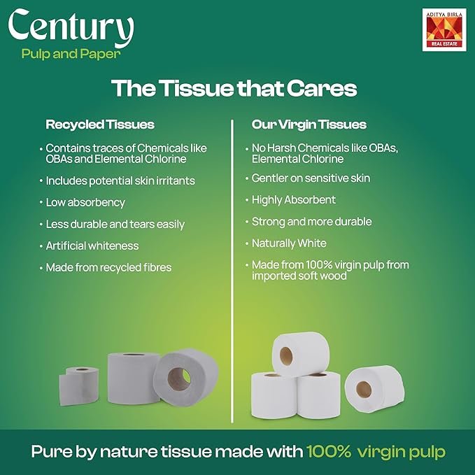Century 2 Ply Soft & Highly Absorbent Toilet/Bathroom Tissue Paper Biodegradable & Chemical-Free Tissue Roll 1 in 1-300 Pulls Per Roll