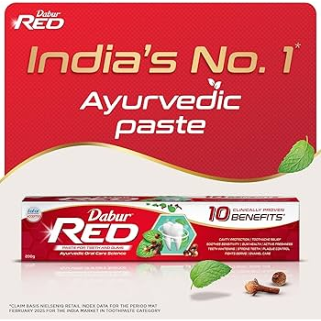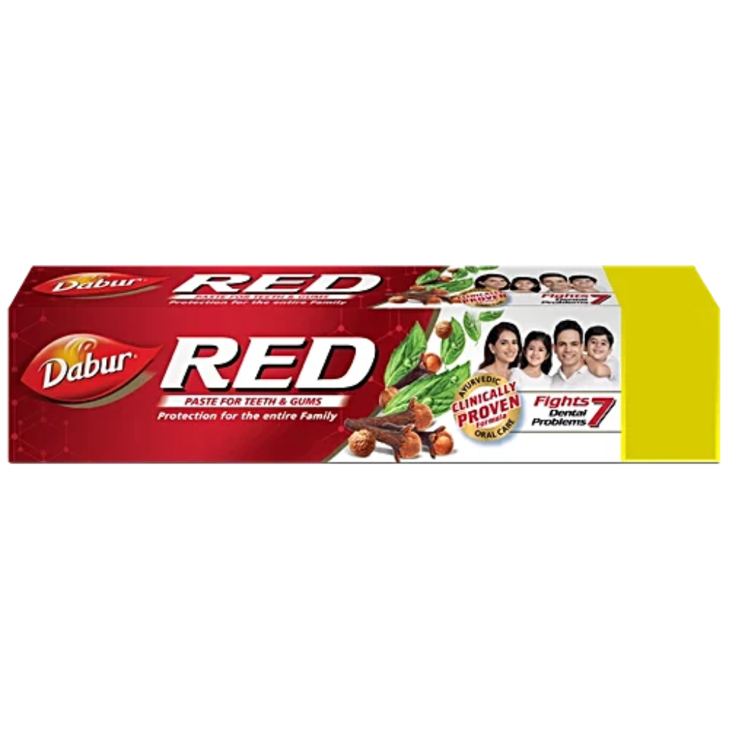 Dabur Red Paste is an unmistakable name when it comes to holistic Ayurvedic oral care. It is India’s No.1 Ayurvedic Fluoride Free Paste and carries a unique blend of traditional Indian medicine and modern pharmaceutical technology, taking the best from both worlds, it provides complete protection from 7 Dental problems: cavities, gingivitis, plaque, toothache, bad breath, yellow teeth, plus weak teeth and gums. It also provides 35% betterment on oral care hygiene index in comparison to other regular toothpaste.