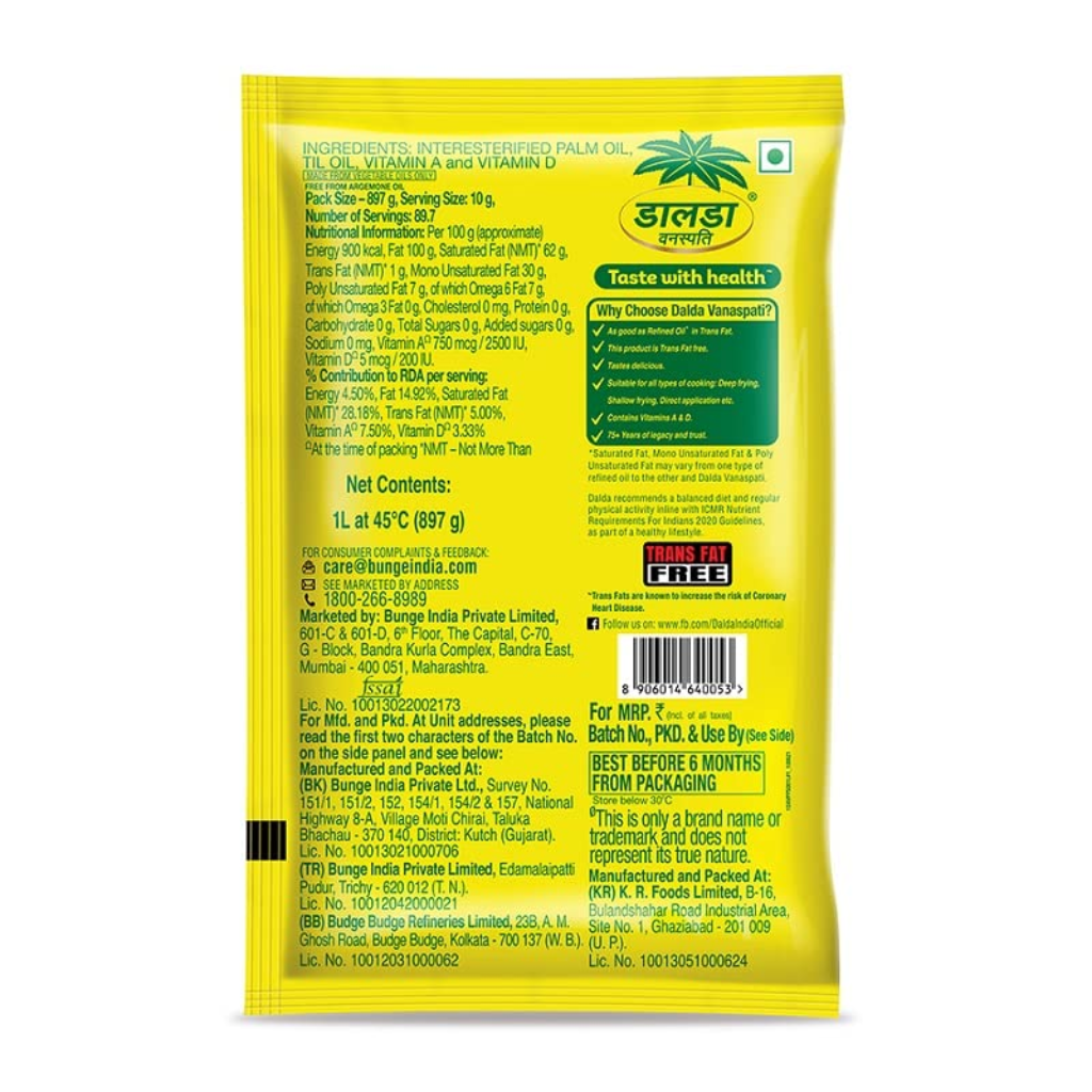 Dalda Vanaspati Ghee-Vanaspati Ghee, 1L Pack,893 Grams