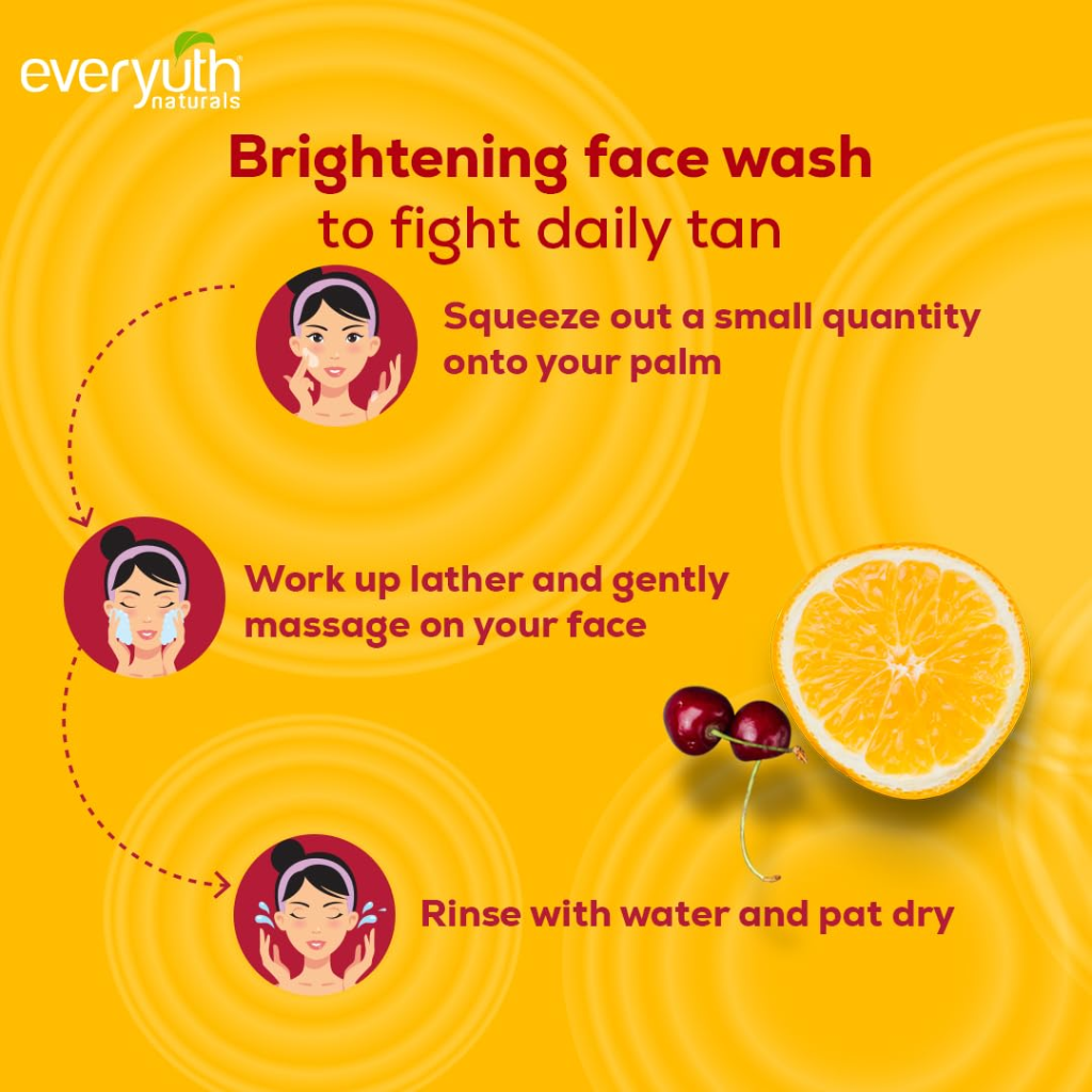 New Everyuth Naturals Brightening Lemon & Cherry Face Wash brings together the Vitamin C rich lemon and brightening cherry extracts. It washes away excess oil without making it too dry. Skin looks brighter. Regular usage helps in fighting tan too.