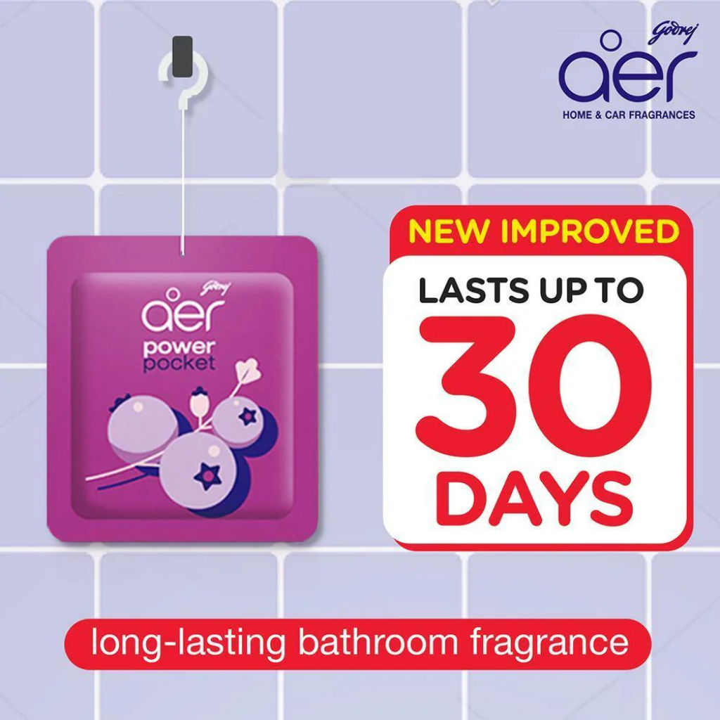 Godrej Aer Power Pocket – Long Lasting Bathroom Fragrance, Berry Rush, 10 g