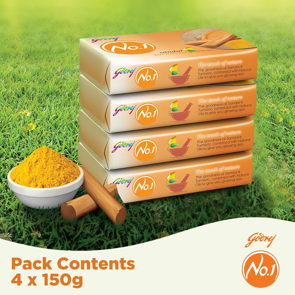 Godrej No.1 Bathing Soap, Sandal & Turmeric, 100g (Pack of 5)