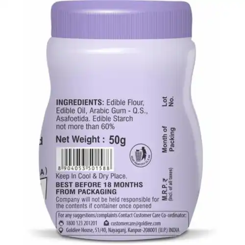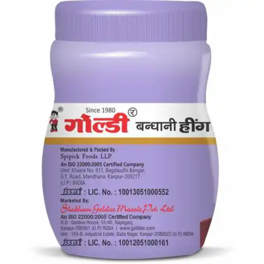 The Indian spice cabinet is incomplete without a mini bottle of Hing (Asafoetida). This brownish powder has a pungent smell in its raw form but dissolves surprisingly well in the dishes during cooking. Add Goldiee 5 Star Compounded Hing to add flavour to your lentil, dals and vegetable dishes.