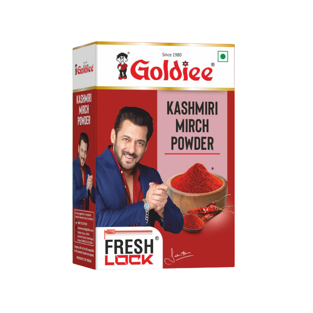 Goldiee Kashmiri Mirchi Powder is a premium spice that brings the rich, vibrant flavor of Kashmiri red chilies to your kitchen. Known for its deep red color and mild heat, this powder enhances the taste of various dishes without overwhelming them. Ideal for curries, marinades, and snacks, it adds a beautiful hue and a subtle warmth, making it a versatile ingredient for both traditional and contemporary recipes.