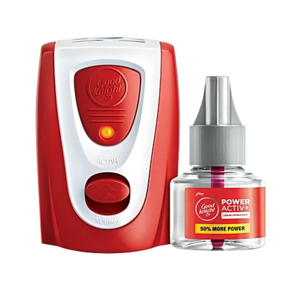 Goodknight Power Activ+ System is the most technologically Superior Liquid Vaporizer in India. The combo pack consists of a mosquito repellent liquid vaporizer & a plug -in electronic machine.