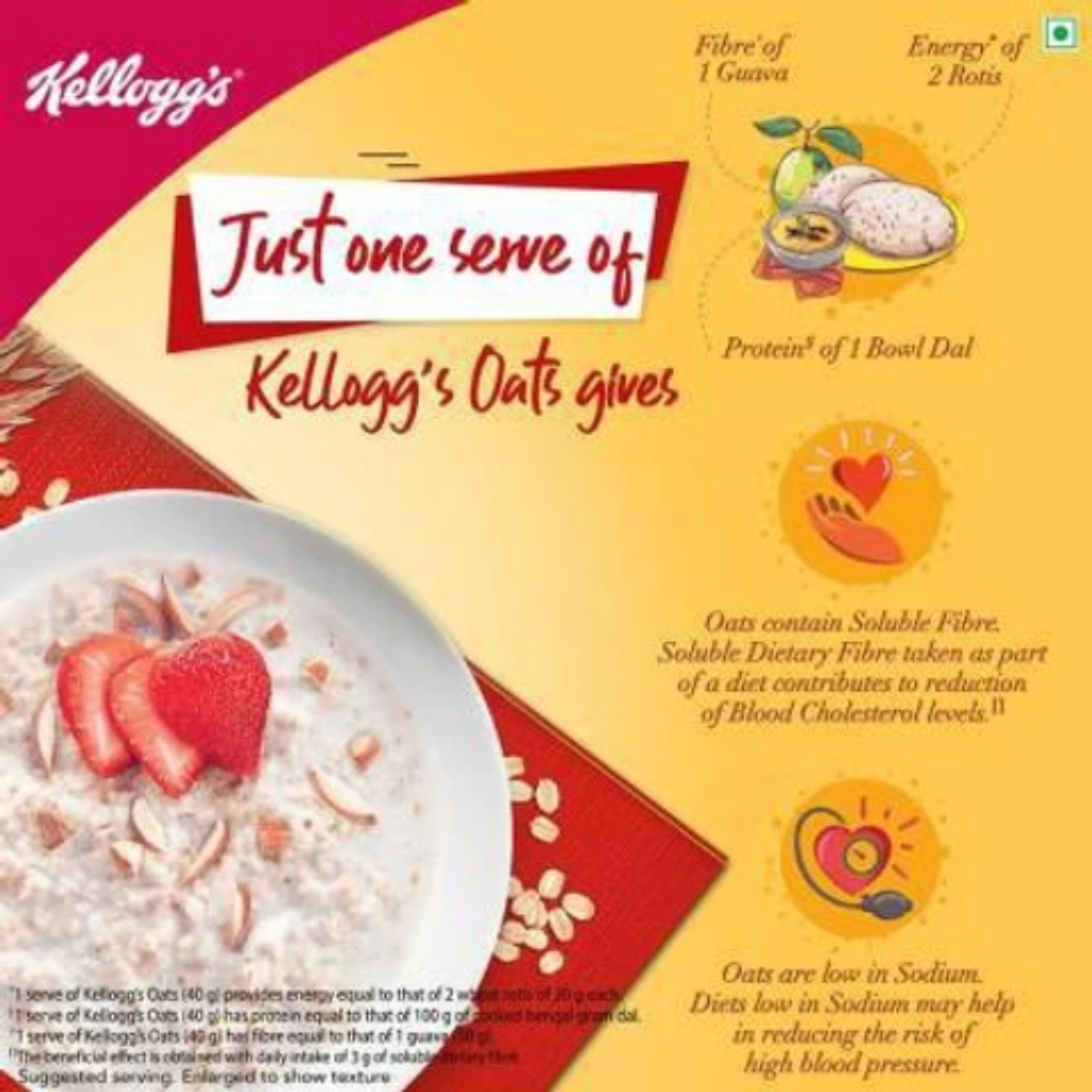 Oats is a wonder grain that has more soluble fibre than grains like wheat and rice. Eating healthy oats may help you avoid unhealthy foods at irregular times. It provides a fair amount of soluble fibre, which helps reduce cholesterol, and whole grain oats also provide energy, carbohydrates, proteins and vitamins. You can now get a microwaveable container free on purchase of two specially marked packs of 500g Kelloggs Oats.