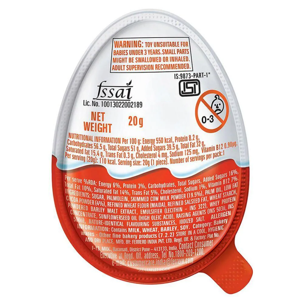 Indulge in the delightful Kinder Joy, a unique treat that combines the joy of chocolate with the excitement of discovering a new toy. This well-designed portion size offers a dual taste experience, featuring a milky cream made from high-quality milk solids and a yummy cocoa cream, all encased in two crunchy wafer bites. Savour the irresistible flavour of this chocolate delight, whether you enjoy it in solitude or share it with friends and family. Kinder Joy is more than just a treat – it’s an experience that will bring a smile to your child’s face with the surprise toy hidden inside. Treat yourself or gift it to someone special, and indulge in the delightful combination of taste and fun.