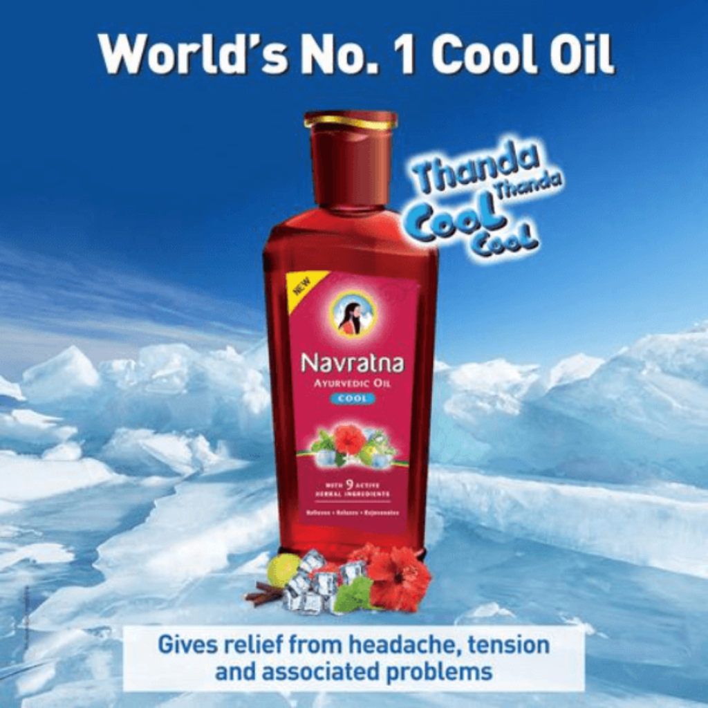 Navratna Ayurvedic Oil – is a Unique Scientific blend of 9 Superior herbs extracted as per Ayurvedic scriptures along with the added goodness of Brahmi and Amla, providing nourishment to the scalp. It keeps you and your family cool and provides effective relief from fatigue & other chronic stress syndromes like, Tension, Headache and Sleeplessness.