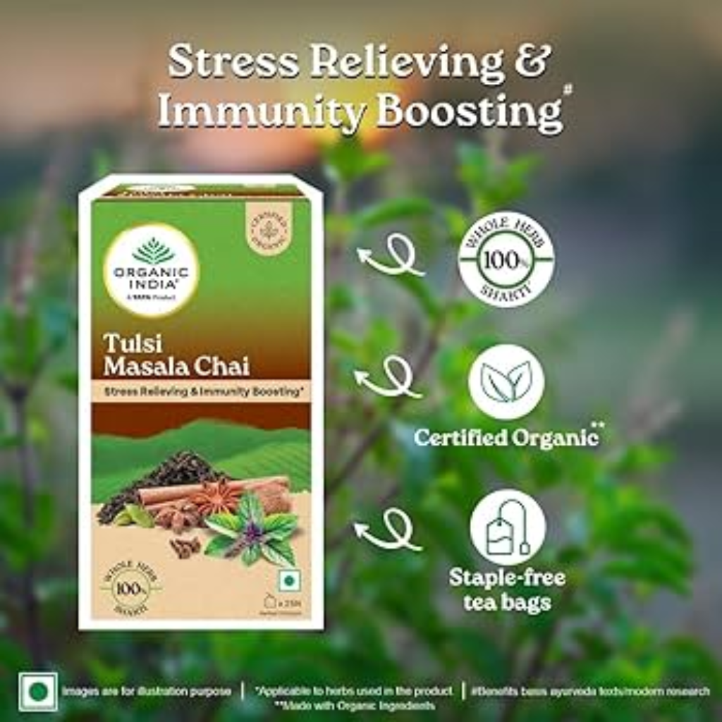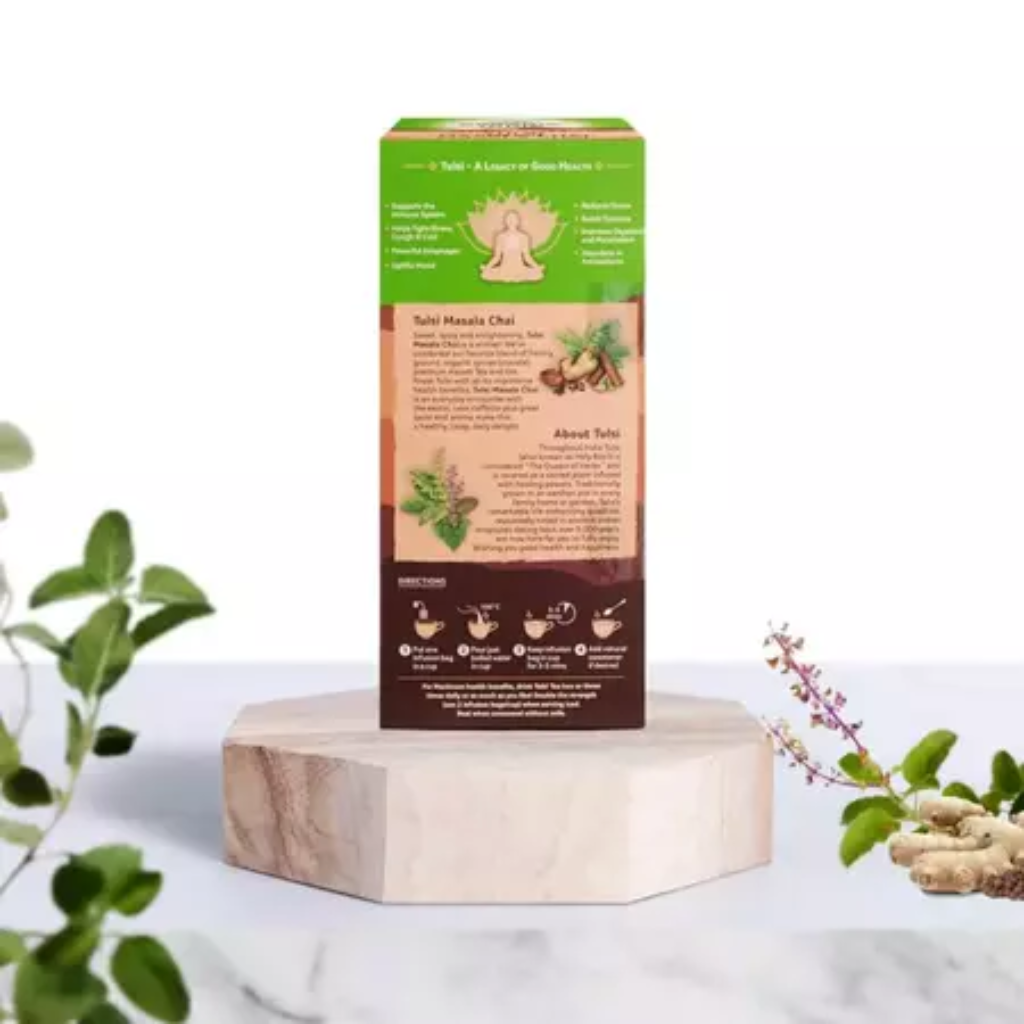 Add 1 infusion bag per cup (120ml) and pour boiling water over it. Let steep for 3-5 minutes. Add a natural sweetener if necessary. Double the strength of Tulsi Masala Chai Tea bags if serving iced.