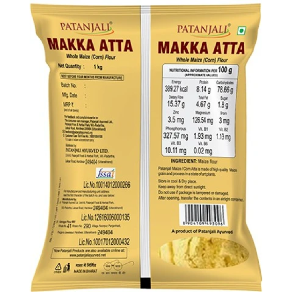 Patanjali maize floor is a premium-quality maize floor made by grinding dried corn kernels into a fine powder. Known for its distinct flavor and texture, it adds a unique element to dishes.