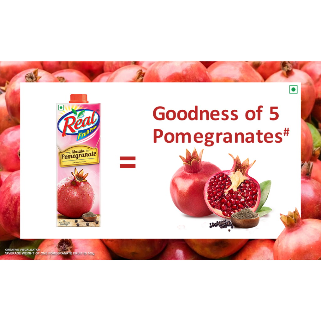 Pomegranate and spicy masala, a love story that is been a part of every Indian home across generations. We, at Real, know exactly how you like your pomegranate because we like it that way too. So, relish every drop of our new masala pomegranate beverage that promises to refresh you with every gulp. Savour the natural fruit goodness brought to you by Real.