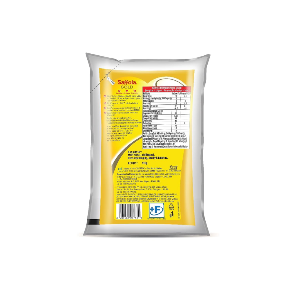 Saffola Gold Refined Cooking oil | Multi-Source Edible Rice Bran & Corn Oil | 1 Litre Pouch