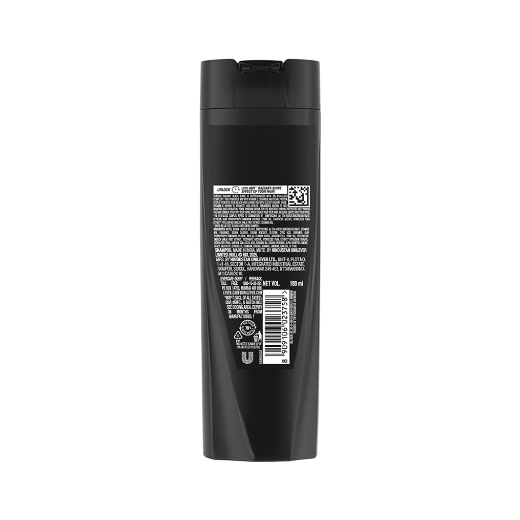 Sunsilk Radiant Black Shine Shampoo Get ready to turn heads with hair that shines like never before! Sunsilk Radiant Black Shine Shampoo unlocks up to 48 hours of dazzling shine, specially crafted for beautiful black hair. Infused with 3% VITA-GLOSS COMPLEX^, this advanced formula blends the power of Vitamin C, Ceramide, and Pearl Protein to deeply hydrate your hair, leaving it glossy, vibrant, and full of life. Whether you’re heading out for a busy day or a special night, this shampoo helps your hair stay radiant, smooth, and manageable. It gently cleanses while nourishing from root to tip, giving your hair a fuller look and a luxurious shine that boosts your confidence with every swish* Using it is simple—just take a coin-sized amount, lather onto wet hair, and massage through your scalp and lengths. Leave it on for a couple of minutes and rinse thoroughly. For ultimate shine and softness, follow it up with the Sunsilk Radiant Black Shine Conditioner. So, girls, it’s your time to shine! Step out with hair that looks as stunning as you feel — radiant, nourished, and beautifully black with Sunsilk Radiant Black Shine Shampoo. *Based on lab test on Sunsilk Shampoo vs. non conditioning shampoo