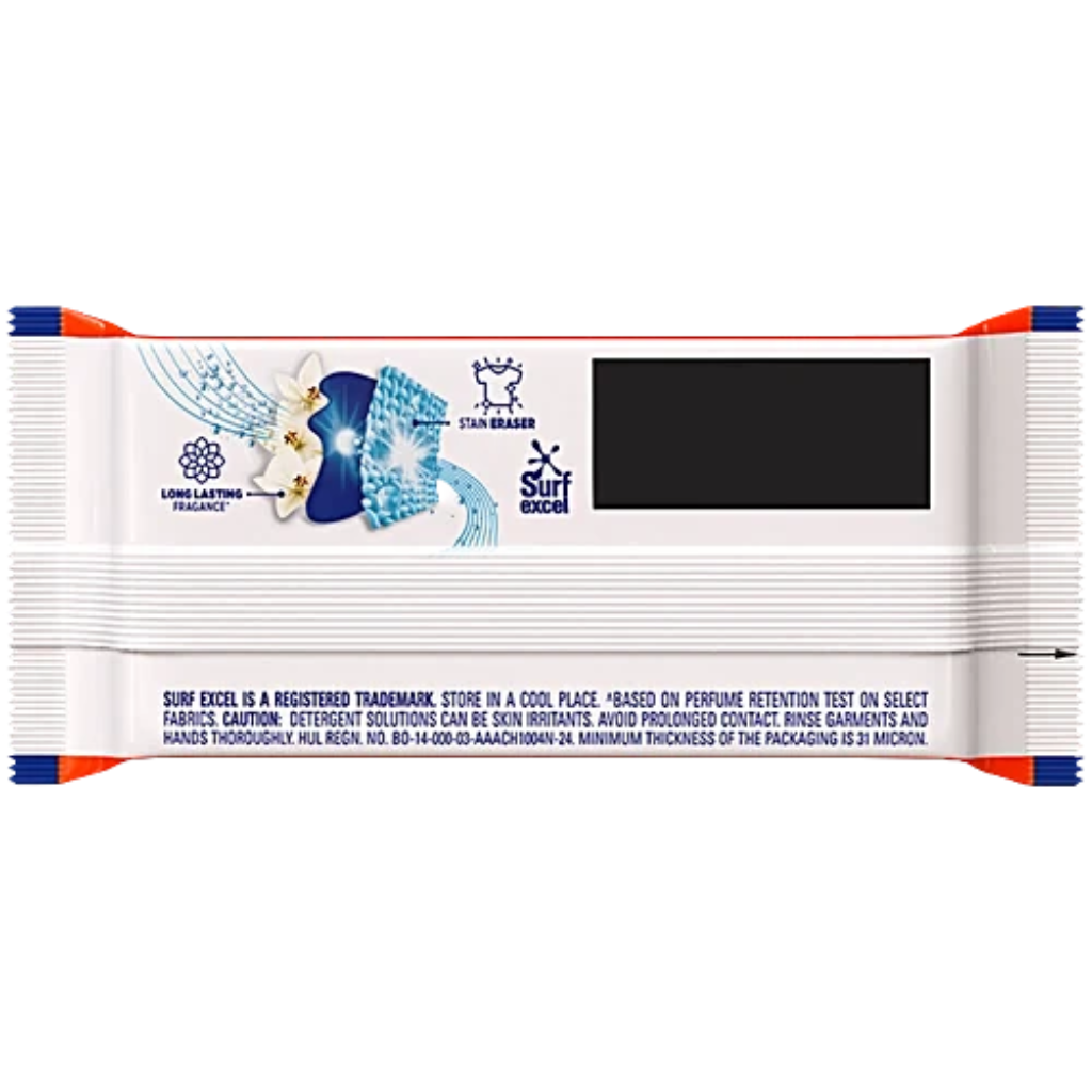 Surf Excel Detergent Bar is India’s most premium detergent bar and is developed with a unique patented technology. Surf Excel Bar combines the power of 4 products – vinegar, blue, bleach, and lemon into just 1 product, thereby helping you fight and remove tough stains easily that help you save time, money, and effort you put behind laundry. With just one product, Surf Excel Bar, you can easily remove tough stains like tea, coffee, turmeric, curry, ketchup, and chocolate. Besides the 95g pack, Surf Excel Bar is also available across other convenient pack sizes such as 150g, 250g, 400g, and 800g (4 packs of 200g each). All you need to do is apply the bar on the tough stains, scrub a little, and then wash the garment as usual and voila, you have spotless clean clothes. Unlike most popular based brands, the effort required when using Surf Excel Bar is far lesser and makes your laundry process a less tedious chore. It is gentle on both your clothes and your hands. Surf Excel Bar removes tough stains easily and works like your own personal stain eraser!